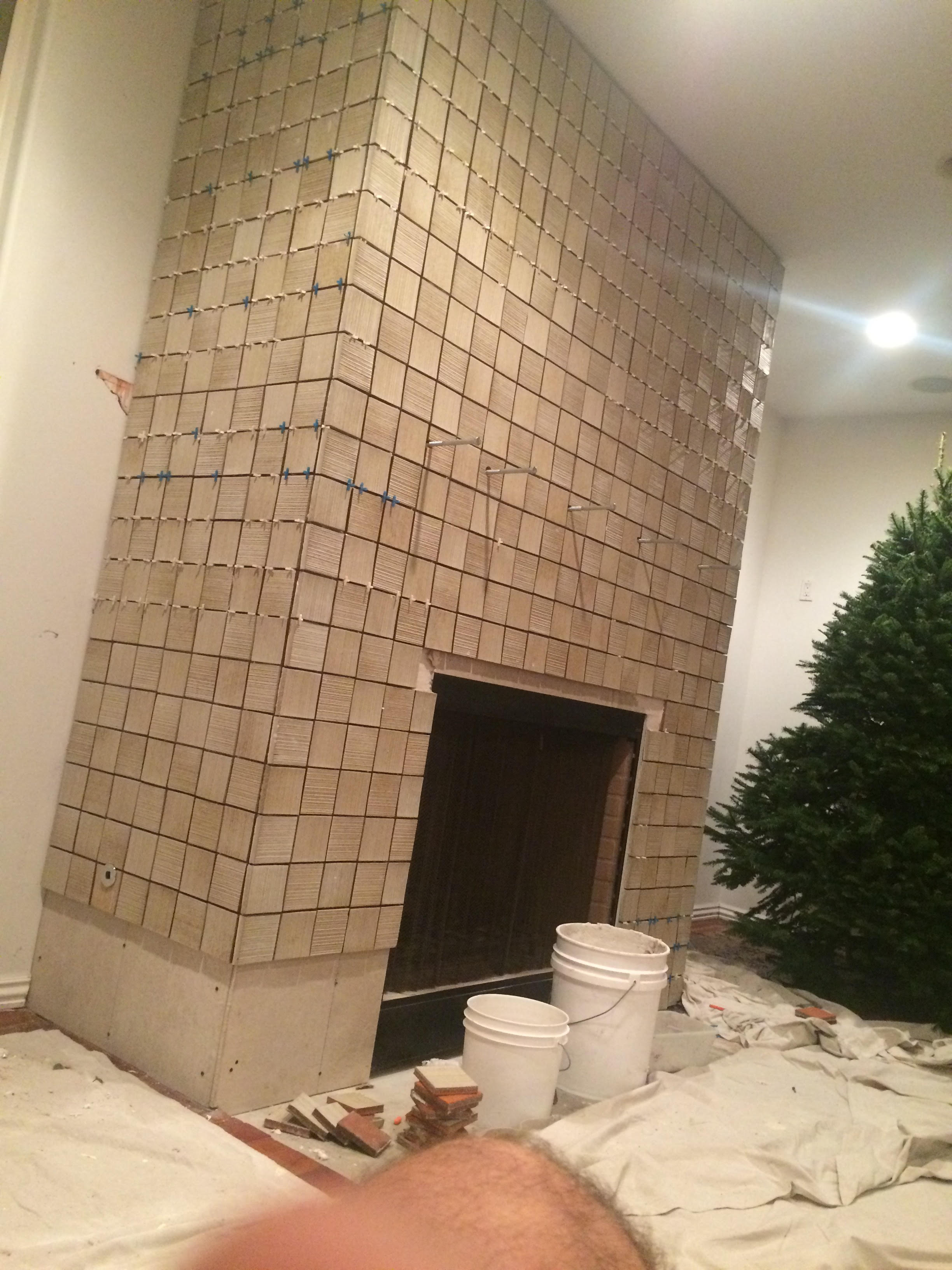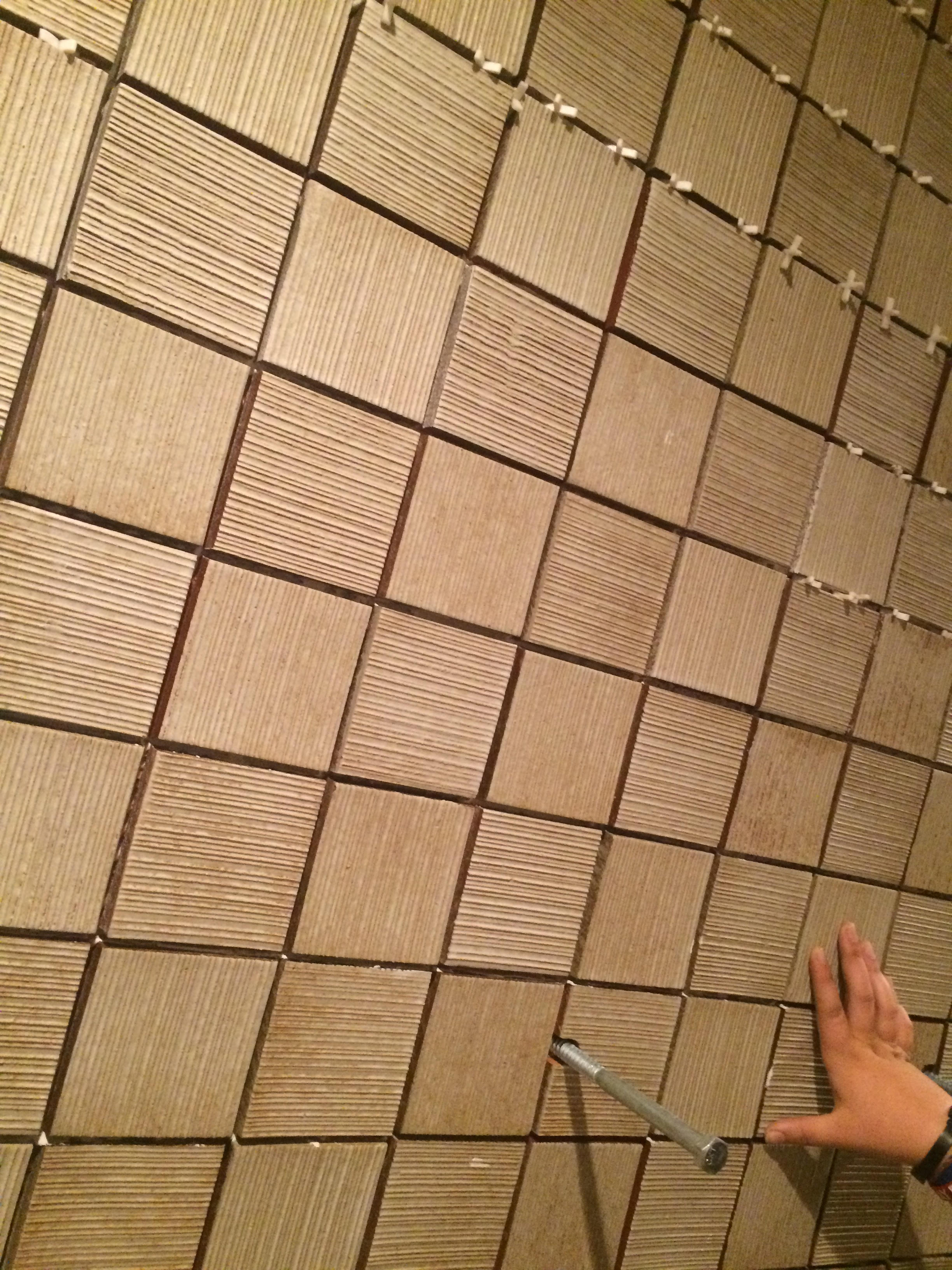 Below are process shots of Corduroy Going up on my fireplace. The tile would no be suitable for floors based on the grove , well maybe but the tile also has a plate / cup action going on that would make any tile man cry .
