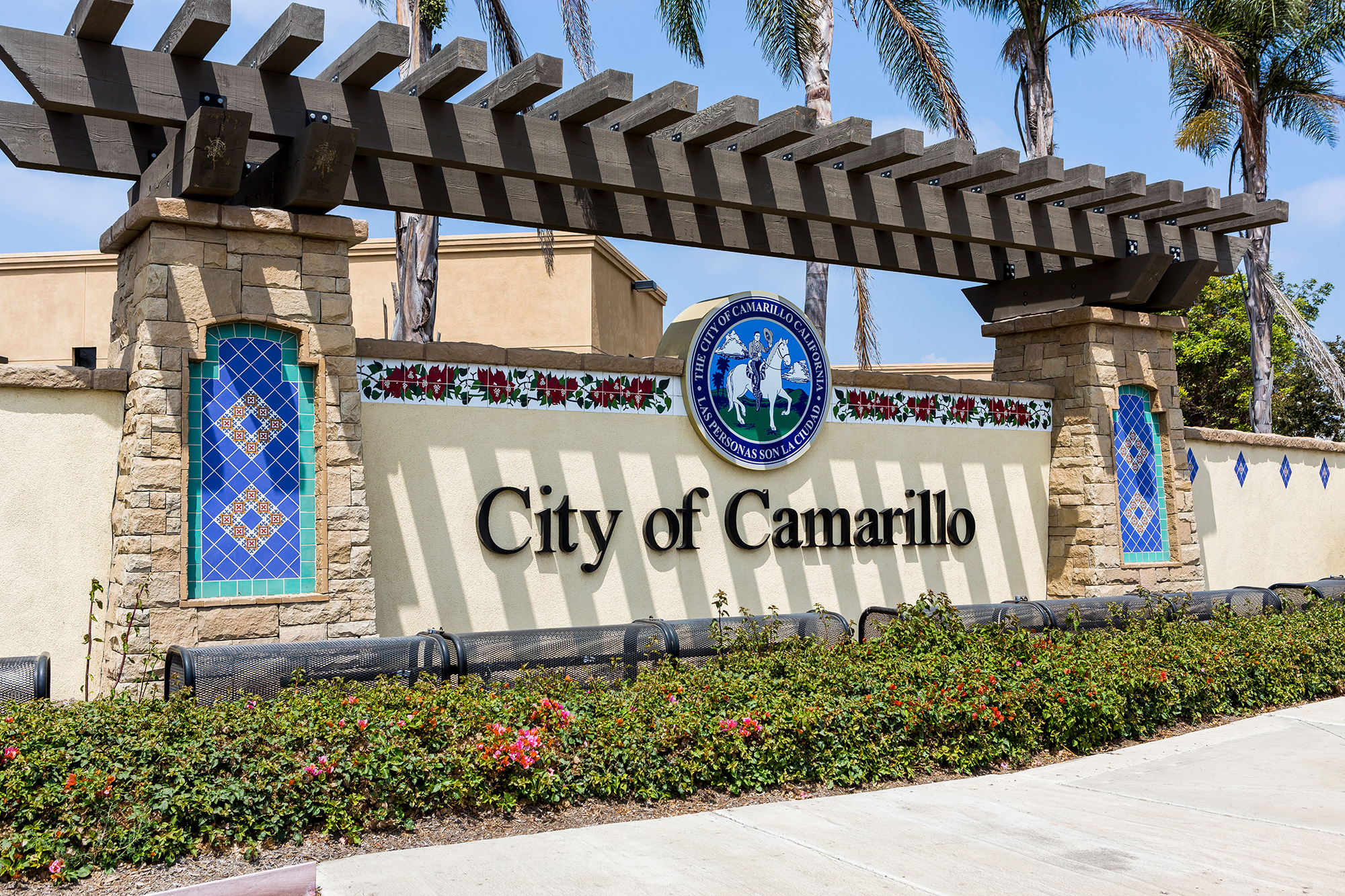 In a nod to its agricultural heritage, the City of Camarillo (in Ventura County, CA) uses a bougainvillea motif in its logo and public art.  Painted or printed bougainville images were used on earlier entry monuments but the city wanted a more polished look for its newest examples.