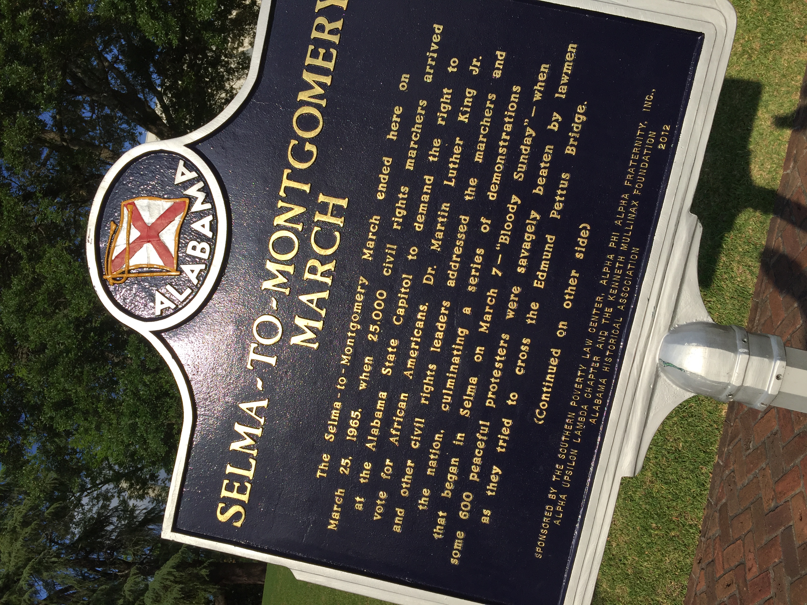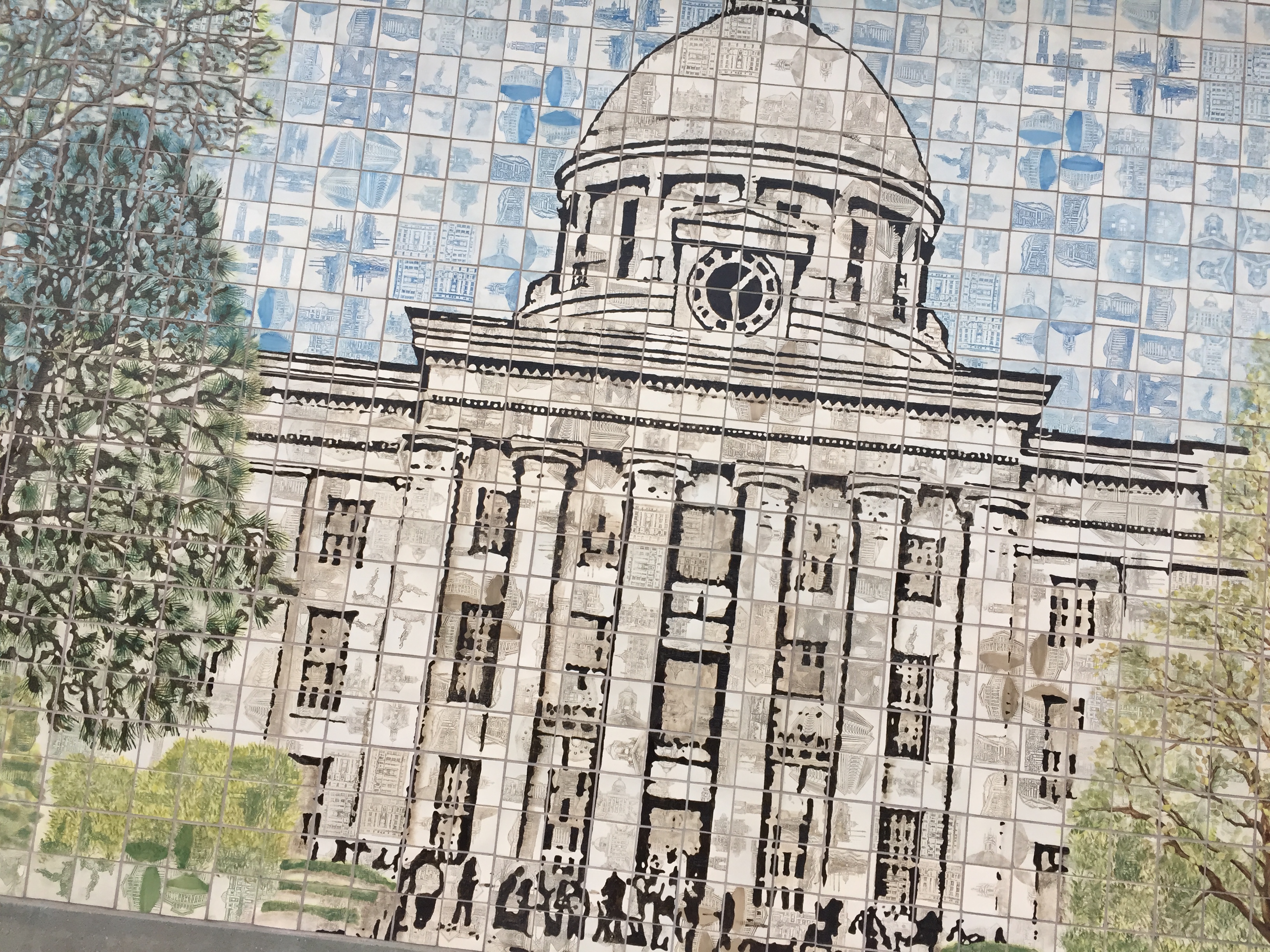 Montgomery. I spent two nights maybe three downtown. Found a fun & tasty place to eat. I think I ate 4 meals plus had my first taste of Pimento & Cheese. Found Some Cool Tile ( below ) too. Explored the capitol & the water front ( below) . A lot of history. Not all good but important & not hidden which was different from where I come from where it seems bad memories are erased then forgotten which can lend it self to be repeated.
